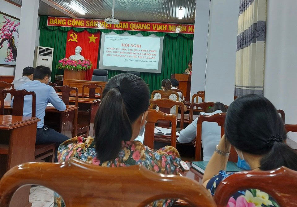 Thực hiện Kế hoạch số 41-KH/CB2 ngày 17/6/2021 của Chi bộ 2 – Đảng bộ Sở Tư pháp. Ngày 30/6/2021, Chi bộ 2 tổ chức Hội nghị nghiên cứu, học tập, quán triệt, triển khai thực hiện Nghị quyết Đại hội đại biểu toàn quốc lần thứ XIII của Đảng. Hội nghị được thực hiện trong điều kiện đảm bảo công tác phòng, chống dịch Covid-19. Tham dự hội nghị có đồng chí Bùi Thị Thanh Thuỷ – Bí thư Chi bộ 2 chủ trì Hội nghị cùng toàn thể các đảng viên, công chức, viên chức và người lao động thuộc Chibộ 2. Bùi Thị Thanh Thuỷ – Bí thư Chi bộ 2 chủ trì Hội nghị Hội nghị đã được nghe đồng chí Bùi Thị Thanh Thuỷ – Bí thư Chi bộ 2 triển khai các nội dung về: Báo cáo chính trị của Ban chấp hành Trung ương Đảng khóa XII tại Đại hội đại biểu toàn quốc XIII của Đảng.Chiến lược phát triển kinh tế- xã hội 10 năm 2021-2030 về kế hoạch phát triển kinh tế-xã hội 5 năm 2021/2025.Báo cáo tổng kết công tác xây dựng Đảng và thi hành Điều lệ Đảng của ban chấp hành Trung ưng khóa XII tại Đại hội đại biểu toàn quốc lần XIII của Đảng. Quang cảnh Hội nghị Phát biểu Kết luận hội nghị, đồng chí Bí thư Chi bộ 2 đánh giá cao tinh thần học tập, quán triệt nghiêm túc của các đảng viên, công chức, viên chức và người lao động thuộc Chi bộ 2. Để việc học tập, quán triệt triển khai thực hiện Nghị quyết Đại hội đại biểu toàn quốc lần thứ XIII của Đảng đạt kết quả cao, đồng chí yêu cầu các đảng viên, công chức, viên chức và người lao động thuộc Chi bộ 2 cần nhận thức sâu sắc việc nghiên cứu, học tập, quán triệt, tuyên truyền và triển khai thực hiện Nghị quyết Đại hội XIII của Đảng là công việc thường xuyên và phải được thực hiện một cách nghiêm túc, bài bản, khoa học trong suốt cả nhiệm kỳ, triển khai cho Đảng viên, công chức, viên chức và người lao động viết bài thu hoạch Nghị quyết. Đây là đợt sinh hoạt chính trị sâu rộng trong Đảng và cả hệ thống chính trị, để mỗi Đảng viên, công chức, viên chức và người lao động nắm vững và thực hiện đúng đắn, sáng tạo Nghị quyết của Đại hội XIII Đảng. Tác giả bài viết: Lê Trung Hiếu