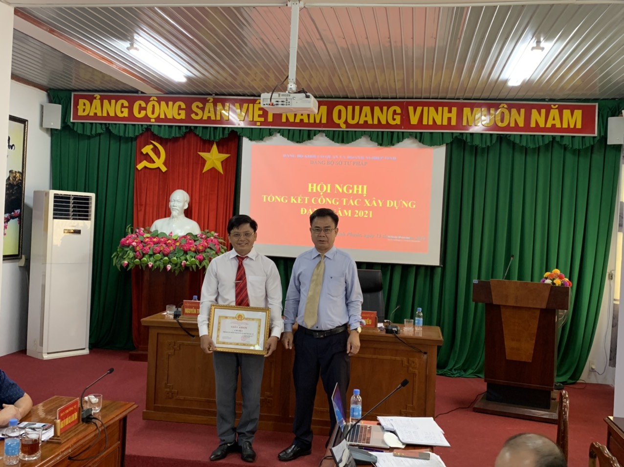 Sáng ngày 13/01/2022, Đảng bộ Sở Tư pháp tổ chức Hội nghị Tổng kết công tác xây dựng Đảng năm 2021, triển khai nhiệm vụ trọng tâm năm 2022. Đồng chí Lê Tiến Hiếu - Bí thư Đảng ủy, Giám đốc Sở chủ trì Hội nghị. Đến dự và chỉ đạo Hội nghị có đồng chí Nguyễn Phúc Bảy - Phó Bí thư Đảng ủy khối Cơ quan và Doanh nghiệp tỉnh.